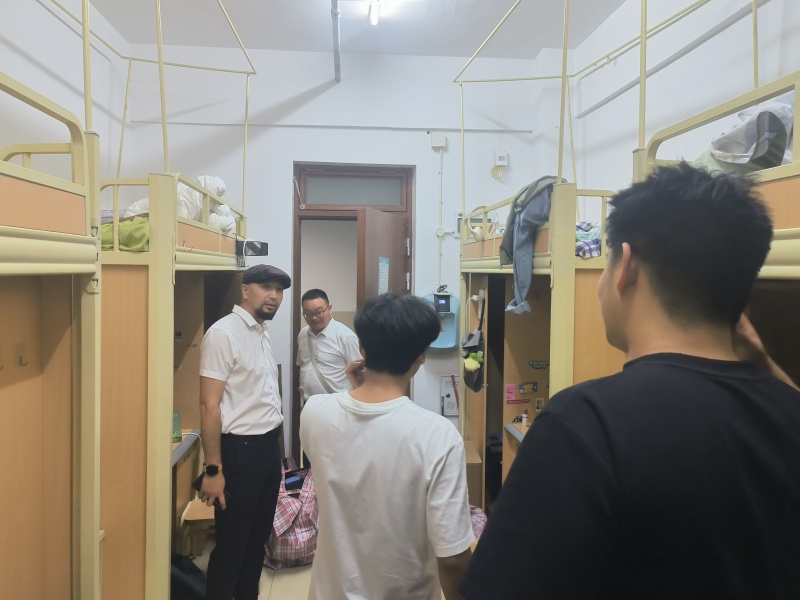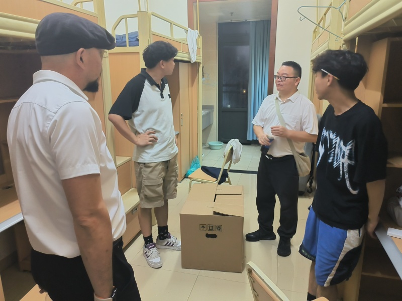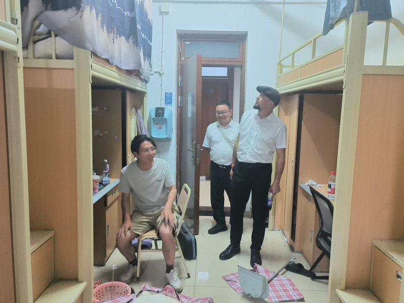今天晚上走访毕业生寝室,共分为两个小组,一组由侯懿书记带队,来到李白河校区B1宿舍,看望即将离校的2025届女生;一组由黄磊院长带队,到李白河校区B2宿舍,看望即将离校的2025届男生。